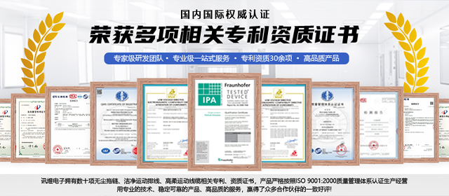 蘇州訊煜電子有限公司深耕線纜與線束領域二十余年,專注于無塵拖鏈、潔凈高柔運動排線、真空線纜、潔凈線纜、高柔運動線纜及智能線束的研發與生產,提供從設計開發到量產交付的全流程服務。公司產品通過ISO 9001:2000質量管理體系認證,并符合RoHS、REACH、CE等國際標準,核心性能指標如潔凈度(IPA Class1)、折彎壽命(達數千萬次)及信號穩定性均達到了很高的標準。